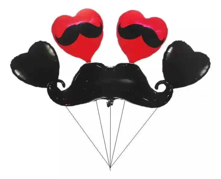 buquet de globos para fiesta de hombre o dia del padre contenido 1 Globo bigote 99x 40 cm 2 Globo negro corazon 45 x 45 cm 2 Globo rojo corazon 45 x 45 cm nota: los globos se envían sin inflar Si deseas adicionar otros Articulos a tu compra puedes escribirnos, para poder ayudarte. - En ciudades fuera de Bogotá despachamos para el mismo día si compras antes de las 12AM - En Bogotá despachamos para el mismo día, si haces el pedido antes de las 2 PM recuerda q tenemos muchos productos disponibles para tener una linda celebración