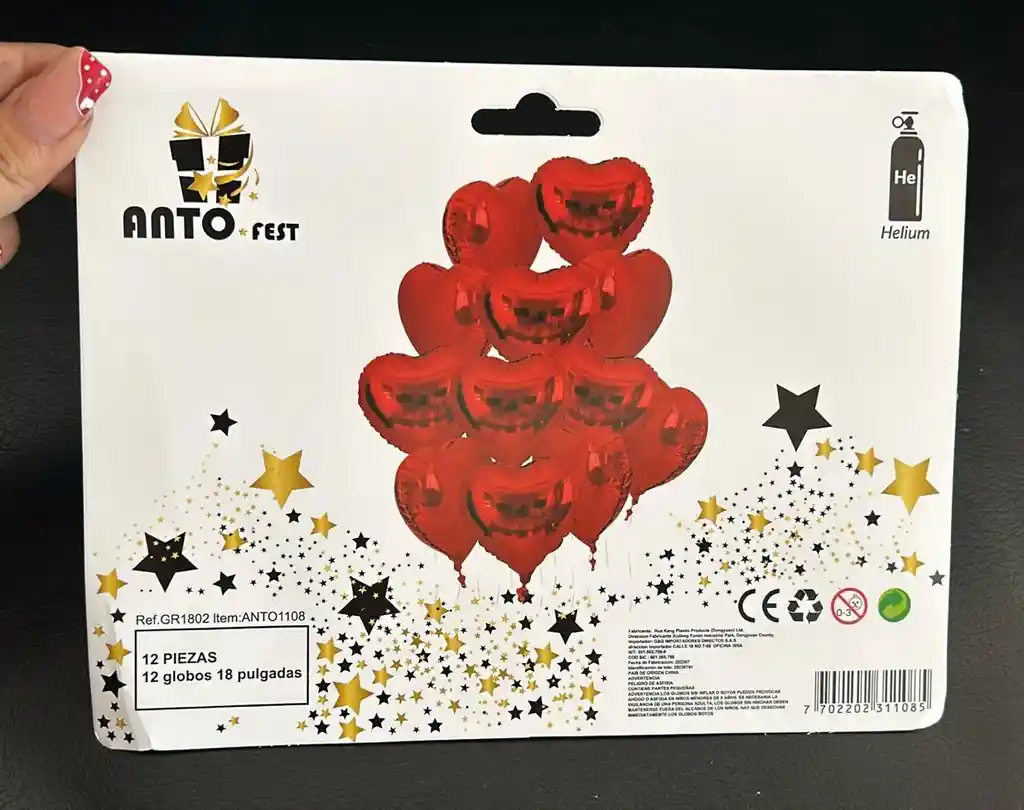 BOUQUET GLOBOS CORAZONES X12 METALIZADOS COD.2019