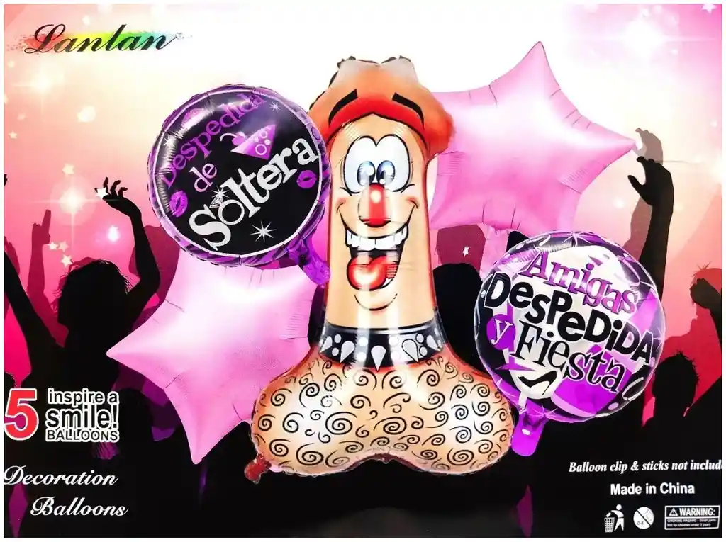 *********************GLOBOS Y PELUCHES MASMELO********************* Por tu compras llevas: 1 Globo pene peludo 58x90 cm 2 Globo estrella metalizada negra 45x45cm 2 Globo despedida de soltera 45x45cm *Los globos se entregan desinflados, tu compra no incluye el montaje ni la decoración, el servicio de armado no lo tenemos disponible. sin embargo te damos todas las instrucciones para hacer de modo profesional. Si deseas adicionar otros articulos a tu compra puedes escribirnos, recuerda que Somos Globos y Peluches Masmelo ;) - En ciudades fuera de Bogotá despachamos para el mismo día si compras antes de las 11AM (no incluye festivos) - En Bogotá despachamos para el mismo día, si haces el pedido antes de las 4PM (no incluye festivos)