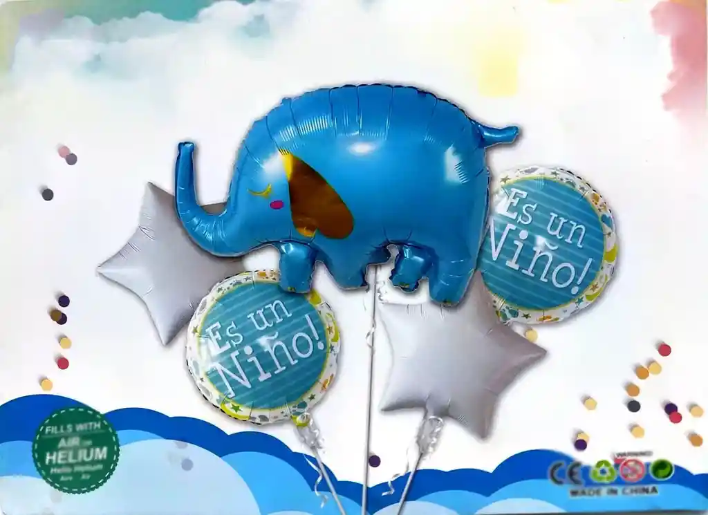 *********************GLOBOS Y PELUCHES MASMELO********************* Por tu compra te llevas: 1 Globo elefante azul 2 Globos estrella blanca 45x45 2 Globo circular tematica niño 45x45 *Los globos se entregan desinflados, tu compra no incluye el montaje ni la decoración, el servicio de armado no lo tenemos disponible. sin embargo te damos todas las instrucciones para hacer de modo profesional. Si deseas adicionar otros articulos a tu compra puedes escribirnos, recuerda que Somos Globos y Peluches Masmelo Si necesitas variación en los colores, colocar un número, más globos o realizar otros cambios en el diseño original escribenos para ver si podemos hacerlo. Tenemos todo lo necesario para tus decoraciones, somos lo último en tendencias mundiales decorativas. Tenemos disponible: Vasos, platos, manteles, guirnaldas, cubiertos, globos de todo tipo, números, letreros, vela, Etc. Puedes encontrar los articulos de nuestra tienda en el siguiente link, copia y pega, si no encuentas lo que necesitas escribenos: https://www.rappi.com.co/tiendas/900280040-globosypeluchesmasmelo-mt-enc/decoracion-para-fiestas/globos-y-bombas