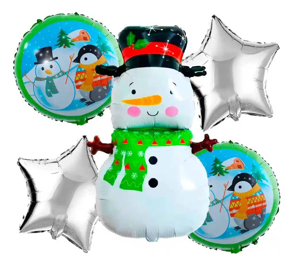 *********************GLOBOS Y PELUCHES MASMELO********************* Por tu compra te llevas: 1 Globo muñeco de nieve 65x45cm 2 Globo estrella plateada 45x45cm 2 Globo circular de navidad 45x45cm *Los globos se entregan desinflados, tu compra no incluye el montaje ni la decoración, el servicio de armado no lo tenemos disponible. sin embargo te damos todas las instrucciones para hacer de modo profesional. Si deseas adicionar otros articulos a tu compra puedes escribirnos, recuerda que Somos Globos y Peluches Masmelo Si necesitas variación en los colores, colocar un número, más globos o realizar otros cambios en el diseño original escribenos para ver si podemos hacerlo. Tenemos todo lo necesario para tus decoraciones, somos lo último en tendencias mundiales decorativas. Tenemos disponible: Vasos, platos, manteles, guirnaldas, cubiertos, globos de todo tipo, números, letreros, vela, Etc. Puedes encontrar los articulos de nuestra tienda en el siguiente link, copia y pega, si no encuentas lo que necesitas escribenos: https://www.rappi.com.co/tiendas/900280040-globosypeluchesmasmelo-mt-enc/decoracion-para-fiestas/globos-y-bombas