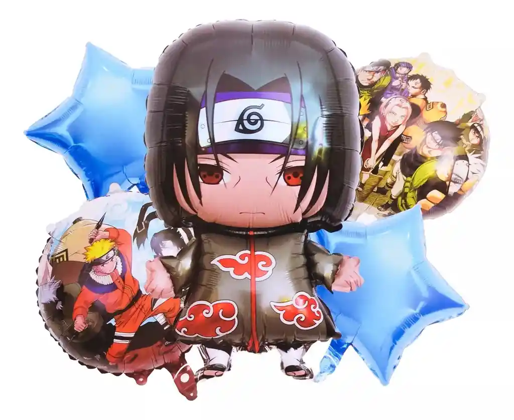 *********************GLOBOS Y PELUCHES MASMELO********************* Somos Mercado Líder Platinum Por tu compra te llevas: 1 Globo Itachi Uchija 65x45cm 2 Globo estrella azul 45x45cm 2 Globo circular 45x45cm *Los Globos se entregan desinflados, tu compra no incluye el montaje ni la decoración, el servicio de armado no lo tenemos disponible. sin embargo te damos todas las instrucciones para hacer de modo profesional. Si deseas adicionar otros artículos a tu compra puedes escribirnos, recuerda que Somos Globos y Peluches Masmelo Si necesitas variación en los colores, colocar un número, más Globos o realizar otros cambios en el diseño original escríbenos para ver si podemos hacerlo. Tenemos todo lo necesario para tus decoraciones, somos lo último en tendencias mundiales decorativas. Tenemos disponible: Vasos, platos, manteles, guirnaldas, cubiertos, Globos de todo tipo, números, letreros, vela, Etc.