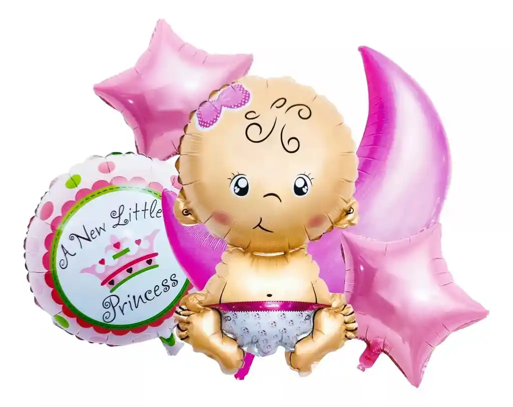 *********************GLOBOS Y PELUCHES MASMELO********************* Somos Mercado Líder Platinum Por tu compra te llevas: 1 Globo luna 55x45cm 1 Globo bebe 65x45cm 1 Globo circular niña 45x45cm 2 Globo estrella rosada 45x45cm *Los Globos se entregan desinflados, tu compra no incluye el montaje ni la decoración, el servicio de armado no lo tenemos disponible. sin embargo te damos todas las instrucciones para hacer de modo profesional. Si deseas adicionar otros artículos a tu compra puedes escribirnos, recuerda que Somos Globos y Peluches Masmelo Si necesitas variación en los colores, colocar un número, más Globos o realizar otros cambios en el diseño original escríbenos para ver si podemos hacerlo. Tenemos todo lo necesario para tus decoraciones, somos lo último en tendencias mundiales decorativas. Tenemos disponible: Vasos, platos, manteles, guirnaldas, cubiertos, Globos de todo tipo, números, letreros, vela, Etc.