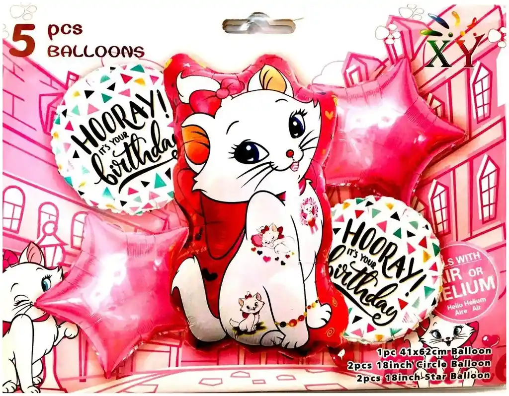 *********************GLOBOS Y PELUCHES MASMELO********************* Por tu compra te llevas: 1 Globo Gata Marie 62 x 40 cm 2 Globo estrella rosada 45x45 cm 2 Globo circulo cumpleaños 45 x 45 cm *Los globos se entregan desinflados, tu compra no incluye el montaje ni la decoración, el servicio de armado no lo tenemos disponible. sin embargo te damos todas las instrucciones para hacer de modo profesional. Si deseas adicionar otros articulos a tu compra puedes escribirnos, recuerda que Somos Globos y Peluches Masmelo ;) - En ciudades fuera de Bogotá despachamos para el mismo día si compras antes de las 11AM (no incluye festivos) - En Bogotá despachamos para el mismo día, si haces el pedido antes de las 4PM (no incluye festivos)