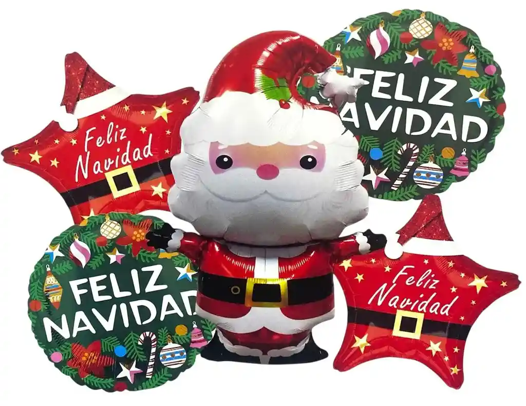 ¡Sumérgete en el espíritu navideño con nuestro Bouquet de 5 globos navideños Ppap Noel Santa! Este paquete incluye 2 globos metalizado Estampado feliz navidad de estrellas colores Rojo de 18 pulgadas, 2 lindos globos metalizado estampado redondos verde y 1 globo grande de Papa Noel ( 65x45cm ). Perfectos para decorar tu hogar o para alegrar cualquier fiesta. ¡Celebra con estilo con estos divertidos globos!