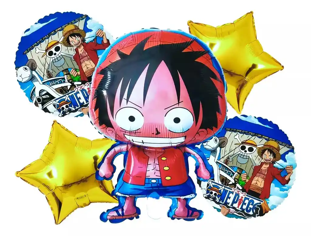 *********************GLOBOS Y PELUCHES MASMELO********************* Somos Mercado Líder Platinum Por tu compra te llevas: 1 Globo Monkey D Luffy 65x45cm 2 Globo estrella metalizada dorado 45x45cm 2 Globo circular One Piece 45x45cm *Los Globos se entregan desinflados, tu compra no incluye el montaje ni la decoración, el servicio de armado no lo tenemos disponible. sin embargo te damos todas las instrucciones para hacer de modo profesional. Si deseas adicionar otros artículos a tu compra puedes escribirnos, recuerda que Somos Globos y Peluches Masmelo Si necesitas variación en los colores, colocar un número, más Globos o realizar otros cambios en el diseño original escríbenos para ver si podemos hacerlo. Tenemos todo lo necesario para tus decoraciones, somos lo último en tendencias mundiales decorativas. Tenemos disponible: Vasos, platos, manteles, guirnaldas, cubiertos, Globos de todo tipo, números, letreros, vela, Etc.