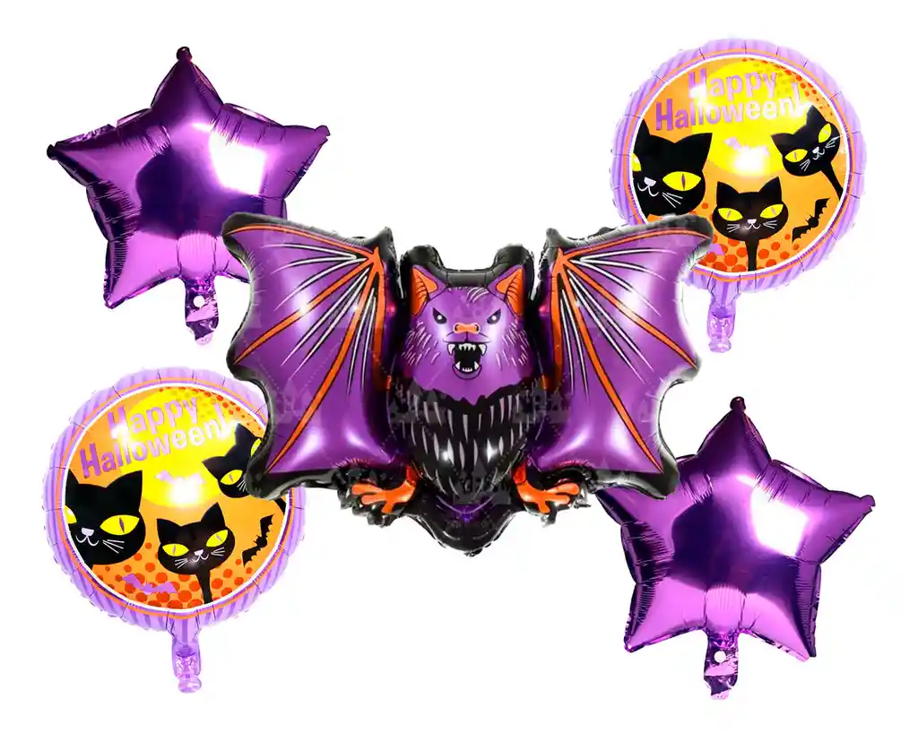 *********************GLOBOS Y PELUCHES MASMELO********************* ————————–Somos Mercado Líder Platinum———————— Por tu compra Llevas: 1 Globo murciélago 45x65cm 2 Globo ocircular Halloween 2 Globo estrella morada 45x45cm *Los globos se entregan desinflados, tu compra no incluye el montaje ni la decoración, el servicio de armado no lo tenemos disponible. sin embargo te damos todas las instrucciones para hacer de modo profesional. Si deseas adicionar otros artículos a tu compra puedes escribirnos, recuerda que Somos Globos y Peluches Masmelo Si necesitas variación en los colores, colocar un número, más globos o realizar otros cambios en el diseño original escríbenos para ver si podemos hacerlo. Tenemos todo lo necesario para tus decoraciones, somos lo último en tendencias mundiales decorativas. Tenemos disponible: Vasos, platos, manteles, guirnaldas, cubiertos, globos de todo tipo, números, letreros, vela, Etc. Puedes encontrar los artículos de nuestra tienda en el siguiente link, copia y pega, si no encuentras lo que necesitas escríbenos: https://www.rappi.com.co/tiendas/900280040-globosypeluchesmasmelo-mt-enc/decoracion-para-fiestas/globos-y-bombas