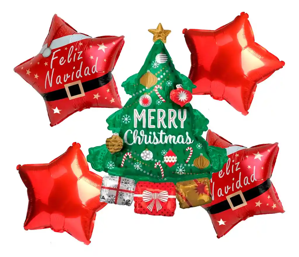 *********************GLOBOS Y PELUCHES MASMELO********************* Por tu compra Llevas: 1 Globo árbol navidad 65x45cm 2 GLobo feliz navidad cinturon 45x45cm 2 Globo rojo 45x45cm Si necesitas variación en los colores, colocarle un número o realizar algunos cambios en el diseño original escribenos para ver si podemos hacerlo. Si deseas adicionar otros articulos a tu compra puedes escribirnos, recuerda que Somos Globos y Peluches Masmelo. Tenemos disponible: Vasos, platos, manteles, guirnaldas, cubiertos, globos de todo tipo, números, letreros, velas. Puedes encontrar los articulos de nuestra tienda en el siguiente link, copia y pega, si no encuentas todo lo que necesitas escribenos: https://www.rappi.com.co/tiendas/900280040-globosypeluchesmasmelo-mt-enc/decoracion-para-fiestas/globos-y-bombas