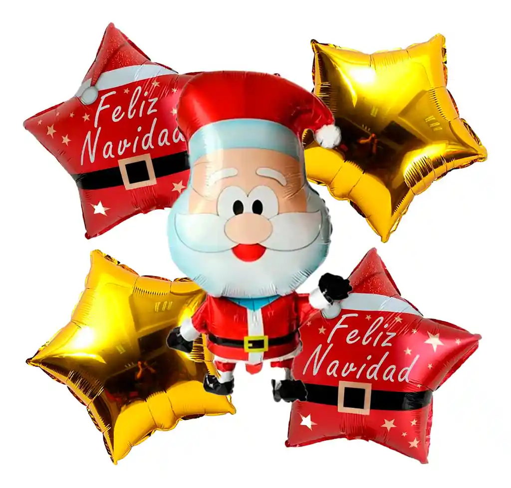 *********************GLOBOS Y PELUCHES MASMELO********************* Por tu compra Llevas: 1 Globo Papá Noel 65x45cm 2 Globo estrella dorado 45x45cm 2 Globo feliz navidad rojo 45x45cm Si necesitas variación en los colores, colocarle un número o realizar algunos cambios en el diseño original escribenos para ver si podemos hacerlo. Si deseas adicionar otros articulos a tu compra puedes escribirnos, recuerda que Somos Globos y Peluches Masmelo. Tenemos disponible: Vasos, platos, manteles, guirnaldas, cubiertos, globos de todo tipo, números, letreros, velas. Puedes encontrar los articulos de nuestra tienda en el siguiente link, copia y pega, si no encuentas todo lo que necesitas escribenos: https://www.rappi.com.co/tiendas/900280040-globosypeluchesmasmelo-mt-enc/decoracion-para-fiestas/globos-y-bombas