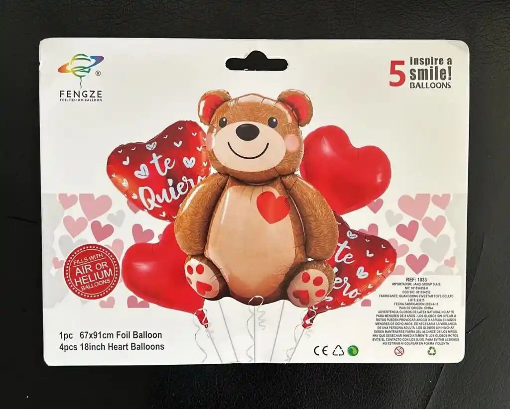 BOUQUET GLOBOS OSO TE QUIERO (( AMOR Y AMISTAD )) X5 PIEZAS COD.2037