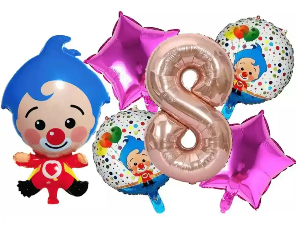*********************GLOBOS Y PELUCHES MASMELO********************* Somos Mercado Líder Platinum Por tu compra te llevas: 2 Globo estrella fucsia 2 Globo circular temática de payaso Plim 1 Globo número 82 cm oro rosa 1 Globo payaso plim 65x45cm