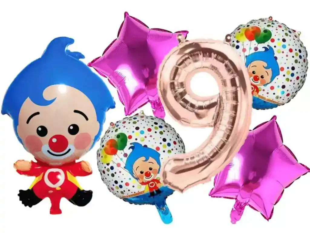 *********************GLOBOS Y PELUCHES MASMELO********************* Somos Mercado Líder Platinum Por tu compra te llevas: 2 Globo estrella fucsia 2 Globo circular temática de payaso Plim 1 Globo número 82 cm oro rosa 1 Globo payaso plim 65x45cm