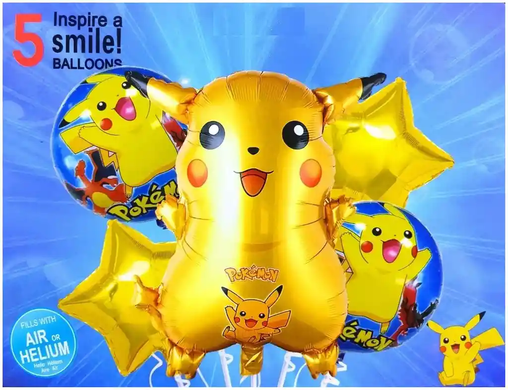 *********************GLOBOS Y PELUCHES MASMELO********************* Te damos toda la asesoria para que tú puedas armar tu propio arco Por tu compra te llevas: 1 Globo Pikachu 60x50cm 2 Globo circulo 45x45cm 2 Globo estrella dorada 45x45cm *Los globos se entregan desinflados, tu compra no incluye el montaje ni la decoración, el servicio de armado no lo tenemos disponible. sin embargo te damos todas las instrucciones para hacer de modo profesional. Si deseas adicionar otros articulos a tu compra puedes escribirnos, recuerda que Somos Globos y Peluches Masmelo ;) - En ciudades fuera de Bogotá despachamos para el mismo día si compras antes de las 11AM (no incluye festivos) - En Bogotá despachamos para el mismo día, si haces el pedido antes de las 4PM (no incluye festivos)