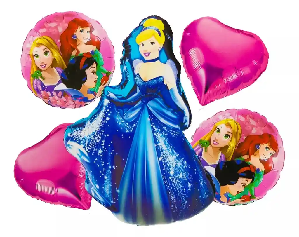 *********************GLOBOS Y PELUCHES MASMELO********************* Somos Mercado Líder Platinum Por tu compra te llevas: 1 Globo princesa cenicienta azul 65x45cm 2 Globo corazón fucsia 45x45cm 2 Globo circular princesas 45x45cm *Los Globos se entregan desinflados, tu compra no incluye el montaje ni la decoración, el servicio de armado no lo tenemos disponible. sin embargo te damos todas las instrucciones para hacer de modo profesional. Si deseas adicionar otros artículos a tu compra puedes escribirnos, recuerda que Somos Globos y Peluches Masmelo Si necesitas variación en los colores, colocar un número, más Globos o realizar otros cambios en el diseño original escríbenos para ver si podemos hacerlo. Tenemos todo lo necesario para tus decoraciones, somos lo último en tendencias mundiales decorativas. Tenemos disponible: Vasos, platos, manteles, guirnaldas, cubiertos, Globos de todo tipo, números, letreros, vela, Etc.