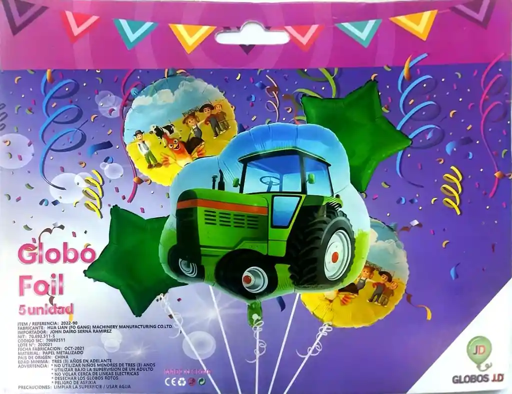 *********************GLOBOS Y PELUCHES MASMELO********************* Te damos toda la asesoria para que tú puedas armar tu propio arco Por tu compra te llevas: 1 Globo Tractor Granja Verde 55×55 cm 2 Globo Estrella Verde 45x45cm 2 Globo Tematica Granja 45x45cm *Los globos se entregan desinflados, tu compra no incluye el montaje ni la decoración, el servicio de armado no lo tenemos disponible. sin embargo te damos todas las instrucciones para hacer de modo profesional. Si deseas adicionar otros articulos a tu compra puedes escribirnos, recuerda que Somos Globos y Peluches Masmelo Si necesitas variación en los colores, colocar un número, más globos o realizar otros cambios en el diseño original escribenos para ver si podemos hacerlo. Tenemos todo lo necesario para tus decoraciones, somos lo último en tendencias mundiales decorativas. Tenemos disponible: Vasos, platos, manteles, guirnaldas, cubiertos, globos de todo tipo, números, letreros, vela, Etc. Puedes encontrar los articulos de nuestra tienda en el siguiente link, copia y pega, si no encuentas lo que necesitas escribenos: https://www.rappi.com.co/tiendas/900280040-globosypeluchesmasmelo-mt-enc/decoracion-para-fiestas/globos-y-bombas
