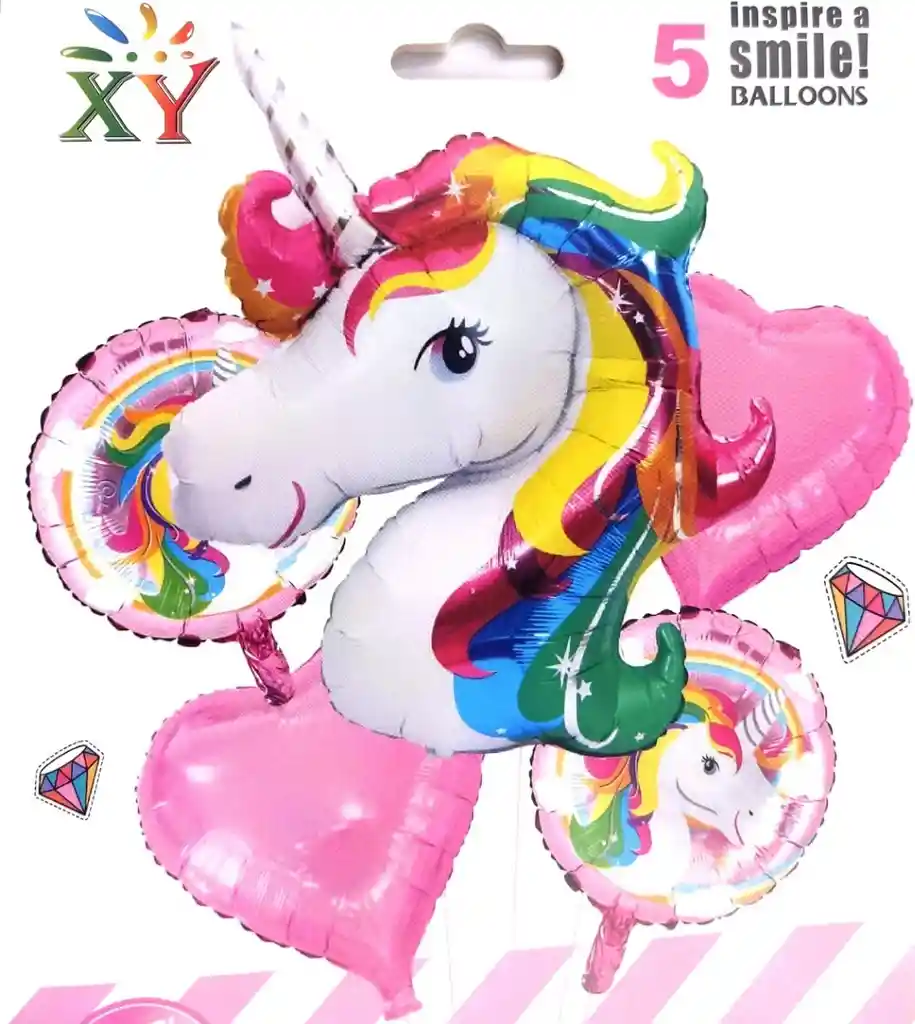 *********************GLOBOS Y PELUCHES MASMELO********************* Por tu compra te llevas. 2 Globo corazón rosado 45x45cm 2 Globo circular temática unicornio 45x45cm 1 Globo Unicornio 80×60 cm *Los globos se entregan desinflados, tu compra no incluye el montaje ni la decoración, el servicio de armado no lo tenemos disponible. sin embargo te damos todas las instrucciones para hacer de modo profesional. Si deseas adicionar otros articulos a tu compra puedes escribirnos, recuerda que Somos Globos y Peluches Masmelo Si necesitas variación en los colores, colocar un número, más globos o realizar otros cambios en el diseño original escribenos para ver si podemos hacerlo. Tenemos todo lo necesario para tus decoraciones, somos lo último en tendencias mundiales decorativas. Tenemos disponible: Vasos, platos, manteles, guirnaldas, cubiertos, globos de todo tipo, números, letreros, vela, Etc. Puedes encontrar los articulos de nuestra tienda en el siguiente link, copia y pega, si no encuentas lo que necesitas escribenos: https://www.rappi.com.co/tiendas/900280040-globosypeluchesmasmelo-mt-enc/decoracion-para-fiestas/globos-y-bombas