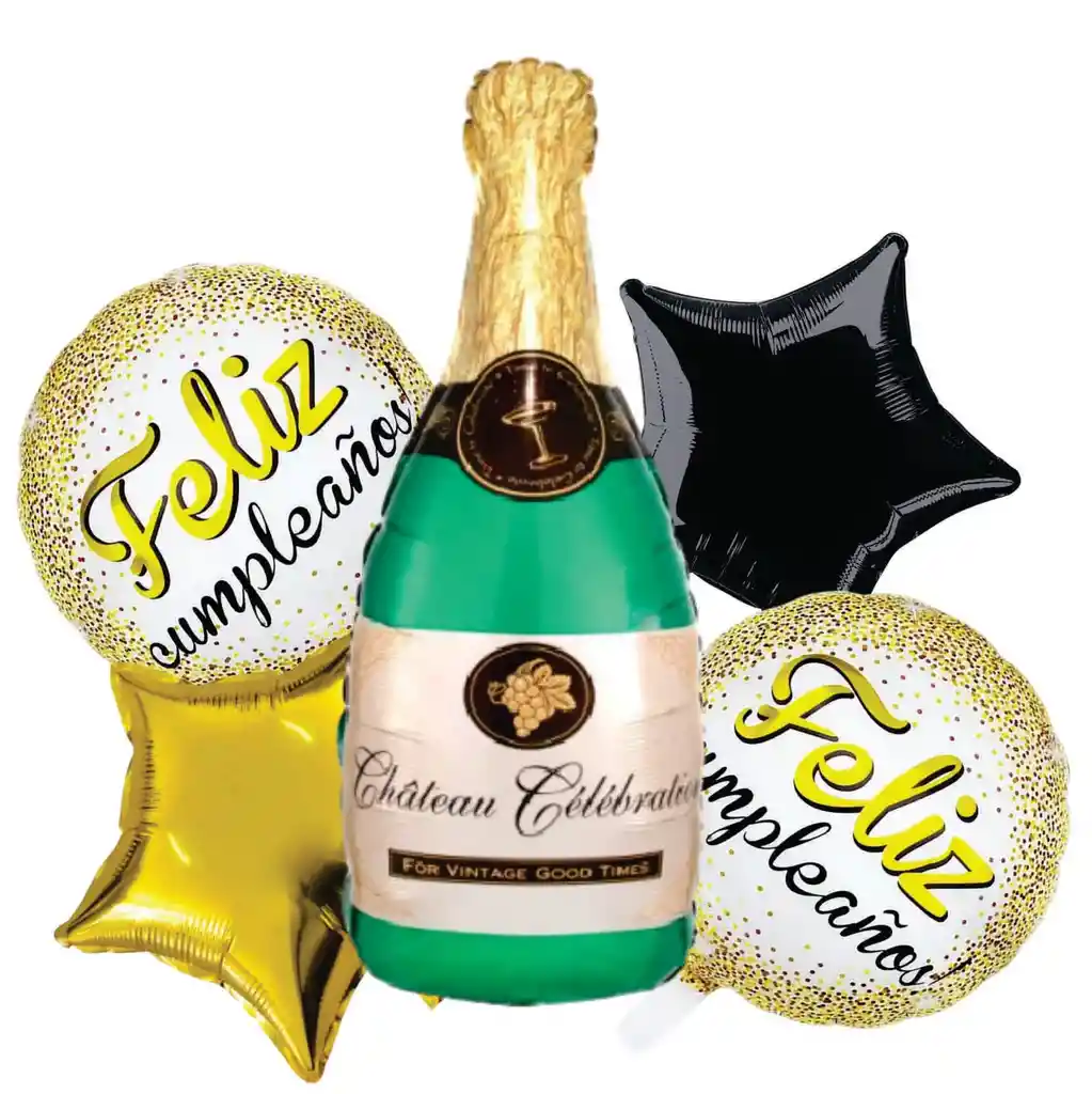 Bouquet De Globos Decorativo Champaña X5 2 Globo Metalizados redondo Feliz Cumpleaños. 18´´ 2 Globo Metalizados Estrella 18 ´´ 1 Globo Champaña verde 🎈 Importante: Los globos se entregan desinflados. Si deseas un inflador manual, o helio contáctanos en el chat para agregarlo por un costo adicional.