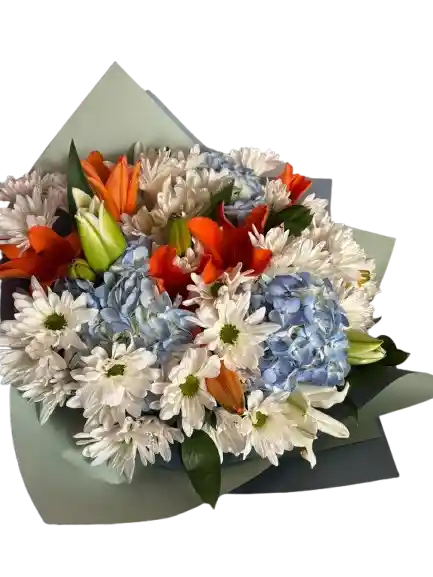Contiene: Un hermoso bouquet de flores surtidas, entre hortensias, margaritas y lirios, incluye tarjeta personalizada Es un detalle perfecto para expresar afecto genuino, valorar a alguien especial o enviar un mensaje de luz y buena vibra. Ideal para cumpleaños, agradecimientos, reconciliaciones, felicitaciones o simplemente para alegrar el día de alguien que quieres.