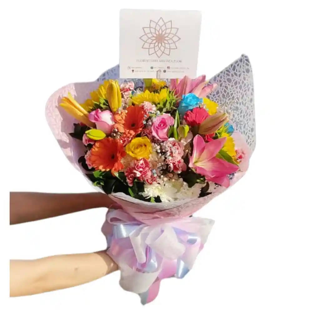 Rosas, Gerberas, Lirios, Claerl, Margaritas. (Cualquiera de estos productos pueden ser sometidos a cambios si no hay su existencia se remplazara por otro del mismo valor y lo mas parecido posible).