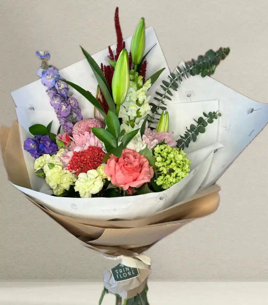 BOUQUET FLORAL CON VARIEDAD DE FLORES LAS FLORES PUEDEN VARIDAR SEGUN LA DISPONIBILIDAD DE FLOR QUE HAYAN EN EL MOMENTO.