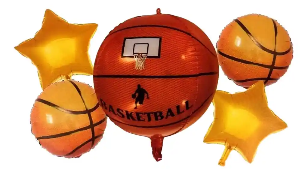 *********************GLOBOS Y PELUCHES MASMELO********************* --------------------------Somos Mercado Lider Platinum------------------------ Por tu compra Llevas: 1 Globo Basquetball 55x55cm 2 Globo circular basquetball 45x45cm 2 Globo estrella dorada 45x45cm *Los globos se entregan desinflados, tu compra no incluye el montaje ni la decoración, el servicio de armado no lo tenemos disponible. sin embargo te damos todas las instrucciones para hacer de modo profesional. Si deseas adicionar otros articulos a tu compra puedes escribirnos, recuerda que Somos Globos y Peluches Masmelo ;) Si necesitas variación en los colores, colocar un número, más globos o realizar otros cambios en el diseño original escribenos para ver si podemos hacerlo. Tenemos todo lo necesario para tus decoraciones, somos lo último en tendencias mundiales decorativas. Tenemos disponible: Vasos, platos, manteles, guirnaldas, cubiertos, globos de todo tipo, números, letreros, vela, Etc. Puedes encontrar los articulos de nuestra tienda en el siguiente link, copia y pega, si no encuentas lo que necesitas escribenos: https://www.rappi.com.co/tiendas/900280040-globosypeluchesmasmelo-mt-enc/decoracion-para-fiestas/globos-y-bombas - En ciudades fuera de Bogotá despachamos para el mismo día si compras antes de las 11AM (no incluye festivos) - En Bogotá despachamos para el mismo día, si haces el pedido antes de las 2PM (no incluye festivos)