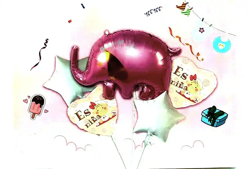 *********************GLOBOS Y PELUCHES MASMELO********************* Por tu compra Llevas: 1 Globo elefante rosado 40x60cm 2 Globo estrella plateada 45x45cm 2 Globo feliz cumpleaños temática animales 45x45cm *Los globos se entregan desinflados, tu compra no incluye el montaje ni la decoración, el servicio de armado no lo tenemos disponible. sin embargo te damos todas las instrucciones para hacer de modo profesional. Si deseas adicionar otros articulos a tu compra puedes escribirnos, recuerda que Somos Globos y Peluches Masmelo Si necesitas variación en los colores, colocar un número, más globos o realizar otros cambios en el diseño original escribenos para ver si podemos hacerlo. Tenemos todo lo necesario para tus decoraciones, somos lo último en tendencias mundiales decorativas. Tenemos disponible: Vasos, platos, manteles, guirnaldas, cubiertos, globos de todo tipo, números, letreros, vela, Etc. Puedes encontrar los articulos de nuestra tienda en el siguiente link, copia y pega, si no encuentas lo que necesitas escribenos: https://www.rappi.com.co/tiendas/900280040-globosypeluchesmasmelo-mt-enc/decoracion-para-fiestas/globos-y-bombas – En Bogotá despachamos para el mismo día, si haces el pedido antes de las 2PM (no incluye festivos)