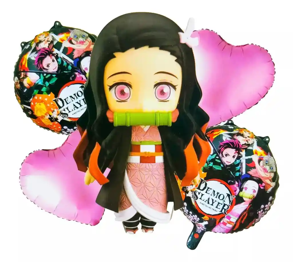 *********************GLOBOS Y PELUCHES MASMELO********************* Somos Mercado Líder Platinum Por tu compra te llevas: 1 Globo Niña Nezuko 65x45cm 2 Globo corazón rosado 45x45cm 2 Globo circular temática Demon Slayer 45x45cm *Los Globos se entregan desinflados, tu compra no incluye el montaje ni la decoración, el servicio de armado no lo tenemos disponible. sin embargo te damos todas las instrucciones para hacer de modo profesional. Si deseas adicionar otros artículos a tu compra puedes escribirnos, recuerda que Somos Globos y Peluches Masmelo Si necesitas variación en los colores, colocar un número, más Globos o realizar otros cambios en el diseño original escríbenos para ver si podemos hacerlo. Tenemos todo lo necesario para tus decoraciones, somos lo último en tendencias mundiales decorativas. Tenemos disponible: Vasos, platos, manteles, guirnaldas, cubiertos, Globos de todo tipo, números, letreros, vela, Etc.