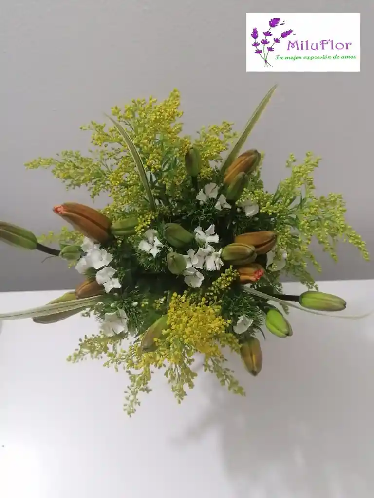 Contiene: 5 Lirios naranjasClavel chino o dianthusFollajeMoño y empaque decorativoMensaje Personalizado (Dejar mensaje en comentarios)Para pedidos puedes escribirnos al 3223042573Aplican T y C
