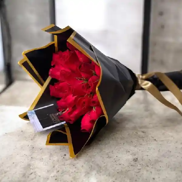 Bouquet de 24 Rosas Naturales Elegante bouquet de 24 rosas naturales frescas, cuidadosamente arregladas y envueltas en papel decorativo. El color y tipo de papel pueden variar según disponibilidad, manteniendo siempre una presentación armoniosa y de alta calidad. Ideal para regalar y sorprender en cualquier ocasión especial. ✨ Rosas naturales frescas · Presentación elegante