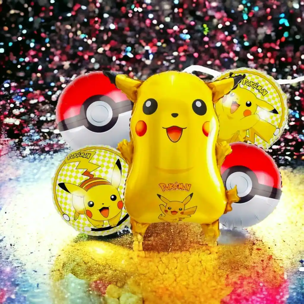 BOUQUET GLOBOS METALIZADOS POKÉMON/ 5 PIEZAS • 1 Globo POKEMON: 70 cm • 2:Globos Redondos Estampado : 45*45cm/cada uno • 2 Globos Redondos 45x45cm/Cada uno •Se pueden inflar con Helio o con aire. •Se venden desinflados.