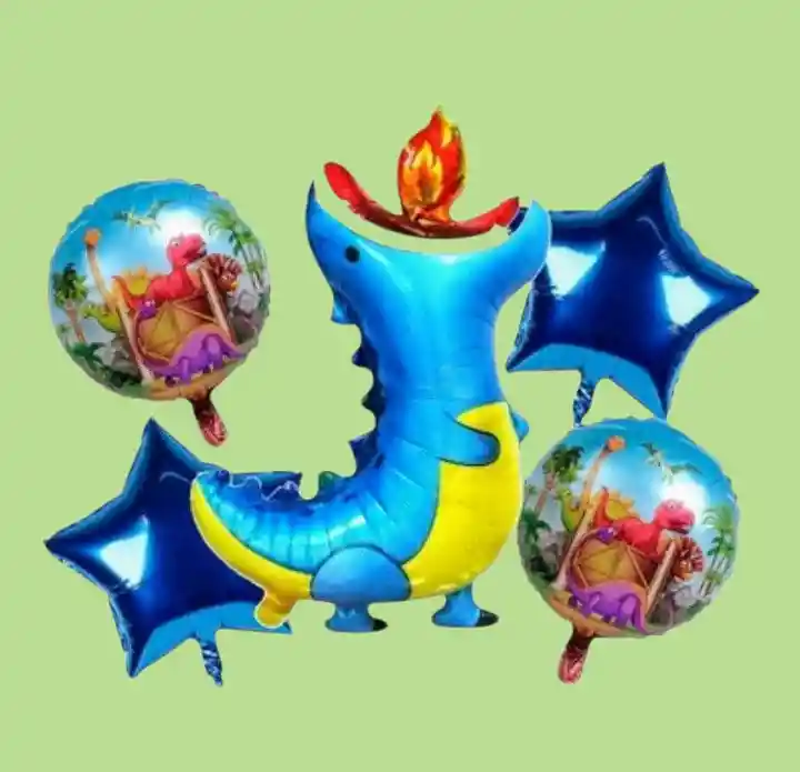 Este bouquet de globos es ideal para añadir una dosis extra de diversión a cualquier evento de entretenimiento. - Adecuado para decorar algunos lugares en los que son capaces de crear un ambiente feliz, y también se pueden utilizar como el fondo de fotos perfecto o accesorios de fotos, fiesta de cumpleaños. - Por tu Compra Llevas: •1 Globo Dino Azul 98x80cm •2 Globos Estrella 45x45cm •2 Globos Redondos: 45x45cm Tener en Cuenta: •Los Globos Vienen Desinflados