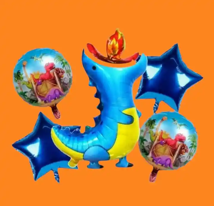 Este bouquet de globos es ideal para añadir una dosis extra de diversión a cualquier evento de entretenimiento. - Adecuado para decorar algunos lugares en los que son capaces de crear un ambiente feliz, y también se pueden utilizar como el fondo de fotos perfecto o accesorios de fotos, fiesta de cumpleaños. - Por tu Compra Llevas: •1 Globo Dino Azul 98x80cm •2 Globos Estrella 45x45cm •2 Globos Redondos: 45x45cm Tener en Cuenta: •Los Globos Vienen Desinflados