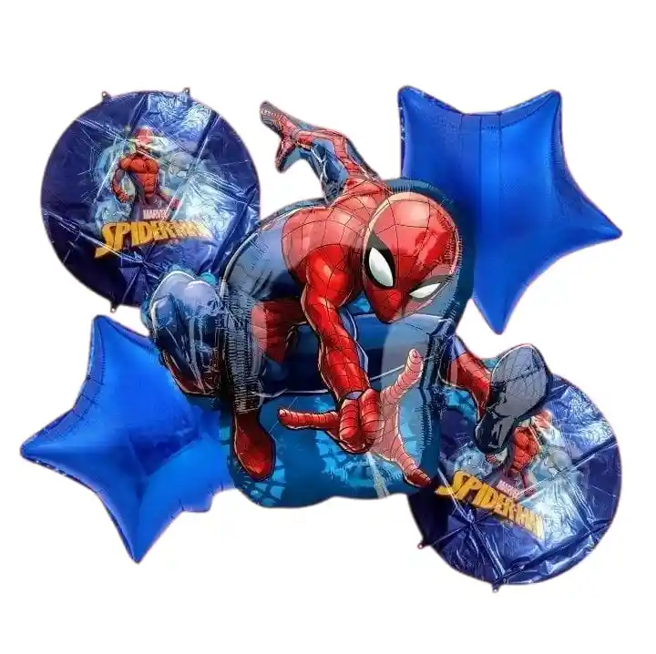 Este bouquet de globos es ideal para añadir una dosis extra de diversión a cualquier evento de entretenimiento. - Adecuado para decorar algunos lugares en los que son capaces de crear un ambiente feliz, y también se pueden utilizar como el fondo de fotos perfecto o accesorios de fotos, fiesta de cumpleaños. - Por tu Compra Llevas: •1 Globo Spiderman: 78x78cm •2 Globos Estrella: 45x45cm •2 Globos Redondos: 45x45cm Tener en Cuenta: •Los Globos Vienen Desinflados