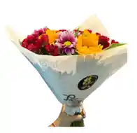 Mix de 10 varas de margartitas de varios colores y 3 girasoles mini Nota: La flor puede ser sustituida dependiendo la disponibilidad de color y del producto “Mensaje Personalizado” máximo de 30 caracteres (Dejar el mensaje en el chat, los comentarios no se previsualizan para la tienda por lo que si se dejan allí no podrá ser incluido).