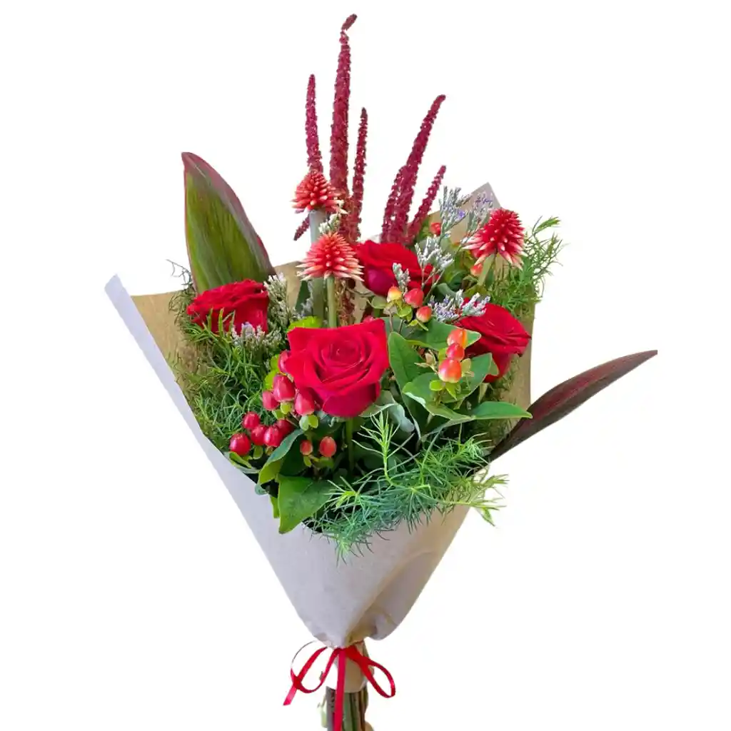 Nuestro bouquet navideño está lleno de muchos colores de la temporada. Perfecto para decorar tu hogar en estas fechas tan especiales.
