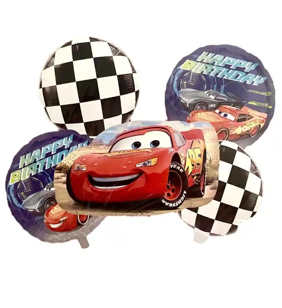 Bouquet Niño Globos Metalizados 5 Piezas Cars. SE ENVÍA DESINFLADO. Para inflar sus globos metalizados o globos de látex, tenemos disponible en nuestra tienda el INFLADOR MANUAL. No olvide incluirlo en su pedido.