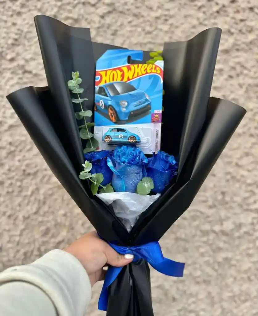 Rosas azules follaje papele de lujo tarjeta carrito hot hotwheels segun disponibilidad en tienda