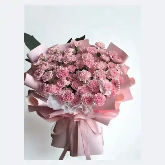 Bouquet con aprox. 24 claveles rosados. Nota: La flor puede ser sustituida dependiendo la disponibilidad de color y del producto “Mensaje Personalizado” máximo de 30 caracteres (Dejar el mensaje en el chat, los comentarios no se previsualizan para la tienda por lo que si se dejan allí no podrá ser incluido).