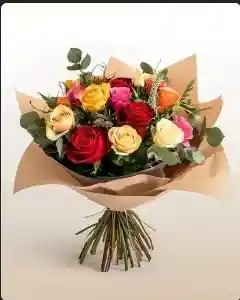 Bouquet de rosas cubierto en papel Kraft