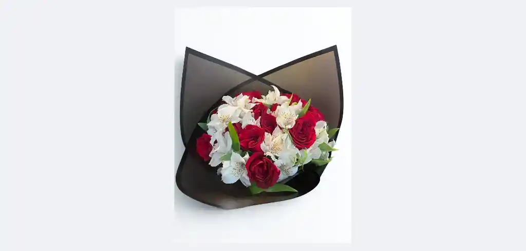 Bouquet con aprox. 12 rosas rojas y 1 paquete de astromelia blanca. Nota: La flor puede ser sustituida dependiendo la disponibilidad de color y del producto “Mensaje Personalizado” máximo de 30 caracteres (Dejar el mensaje en el chat, los comentarios no se previsualizan para la tienda por lo que si se dejan allí no podrá ser incluido).