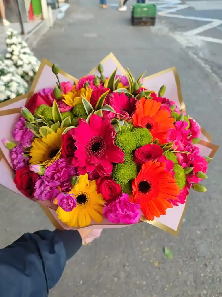 Un Regalo que Explota de Color y Alegría! 🌈💐 ¿Quieres sorprender a alguien especial con un regalo que sea una explosión de color y alegría? Nuestro ramo de flores de colores es la opción perfecta. - Flores frescas y de alta calidad en una variedad de colores - Arreglo único y personalizado para cada ocasión