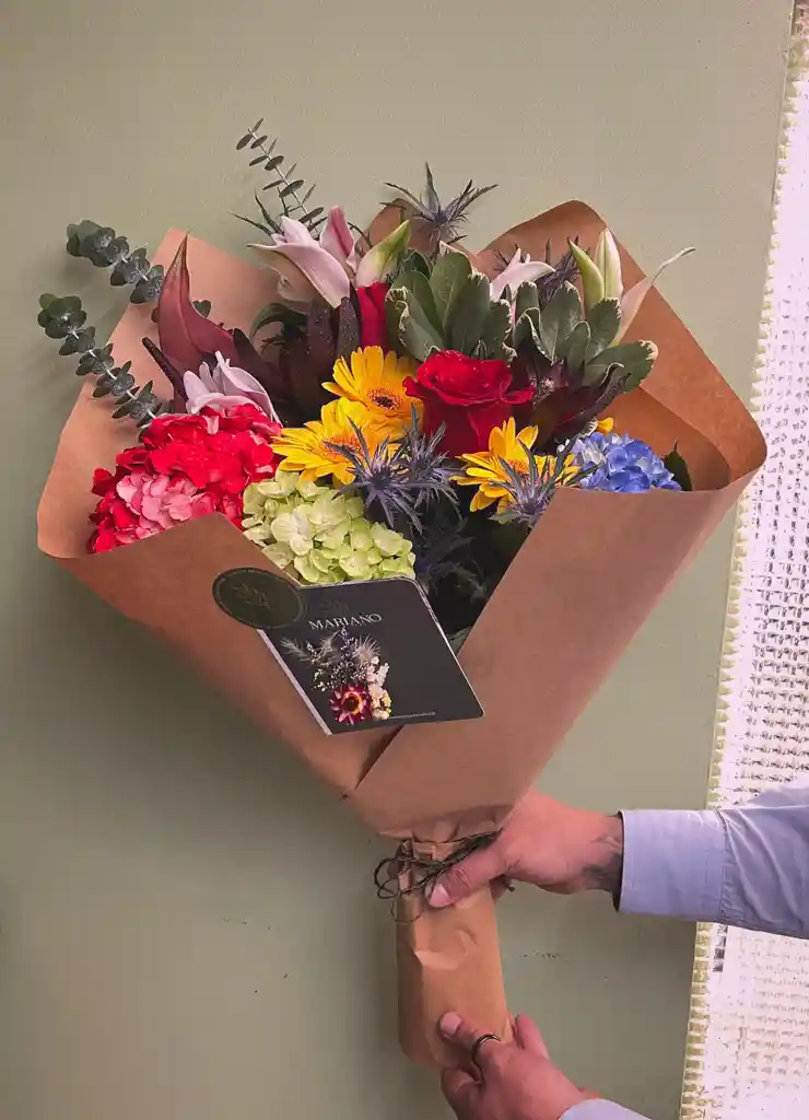 Compuesto por variedad de flores de cosecha, de tamaño mediano Incluye tarjeta para su mensaje y guía de cuidados. *Algunas flores pueden cambiar y ser reemplazadas por otras, esto sin afectar el diseño o tamaño del Bouquet*