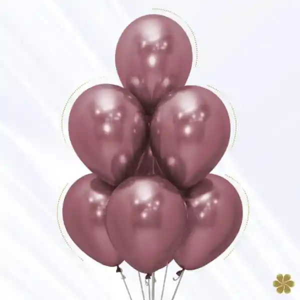 Bouquet de globos en color rosado cromado inflados con helio, incluye: ·7 Globos rosados cromados inflados con helio. ·1 Pesa sencilla para sostener globos. Y tratamiento de larga duración para 8 globos de látex. Tiempo aproximado flotación de globos 1 a 2 días. *TIEMPOS ACTUALES DE FLOTACIÓN VARIA DEPENDIENDO DE LA TEMPERATURA Y LAS CONDICIONES ATMOSFERICAS* (Se envía el bouquet armado e inflado)