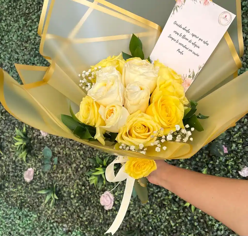 Bouquet rosas amariilas y blancas
