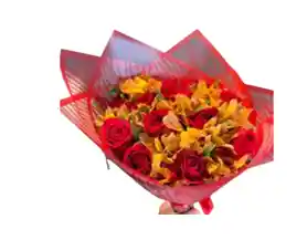 Bouquet De 12 Rosas Rojas Con 1 paquete de Astromelias Naranjas . Nota: La flor puede ser sustituida dependiendo la disponibilidad de color y del producto “Mensaje Personalizado” máximo de 30 caracteres (Dejar el mensaje en el chat, los comentarios no se previsualizan para la tienda por lo que si se dejan allí no podrá ser incluido).