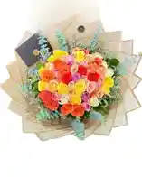 Bouquet de aprox. 24 rosas mix con 10 varas de eucalipto 7 varas de rusco y gypsophila. Nota: La flor puede ser sustituida dependiendo la disponibilidad de color y del producto “Mensaje Personalizado” máximo de 30 caracteres (Dejar el mensaje en el chat, los comentarios no se previsualizan para la tienda por lo que si se dejan allí no podrá ser incluido).