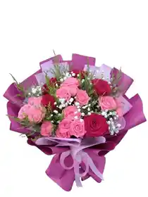 Bouquet de aprox, 6 rosas rojas y 12 rosas rosadas con gypsophila Y helecho . Nota: La flor puede ser sustituida dependiendo la disponibilidad de color y del producto “Mensaje Personalizado” máximo de 30 caracteres (Dejar el mensaje en el chat, los comentarios no se previsualizan para la tienda por lo que si se dejan allí no podrá ser incluido).