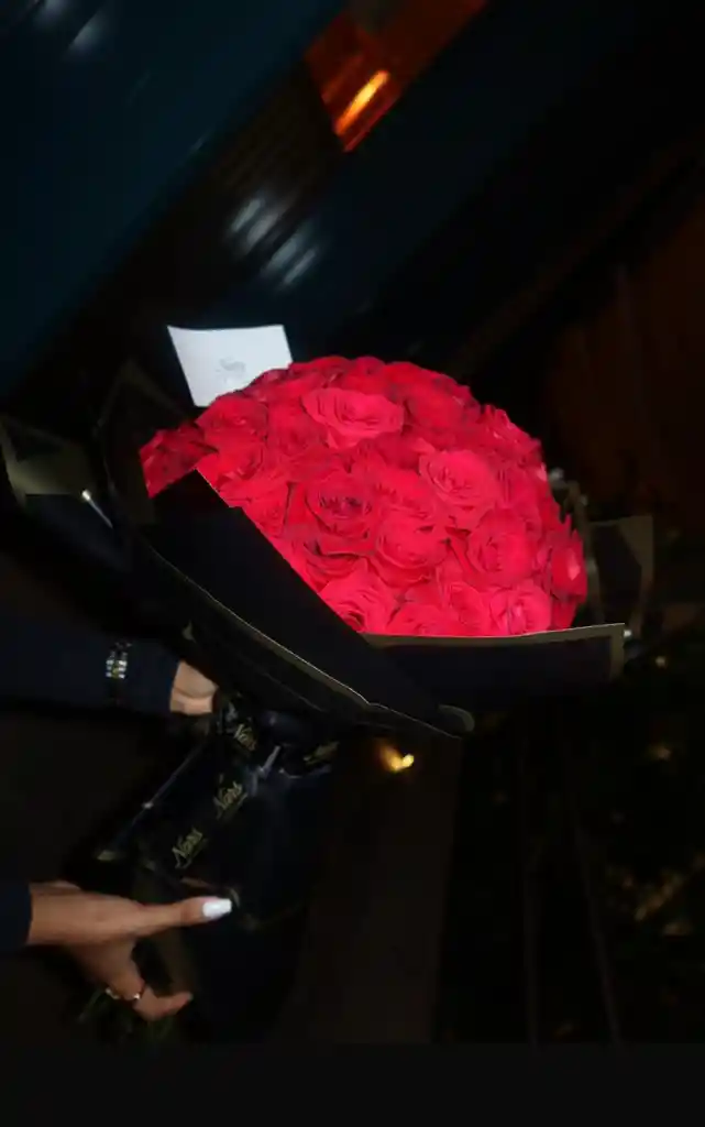 Bouquet rosas rojas por 50 unidades con papel de lujo, color variable según disponibilidad