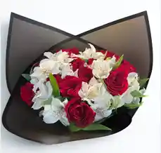 Bouquet con aprox. 12 rosas rojas y 1 paquete de astromelia blanca. Nota: La flor puede ser sustituida dependiendo la disponibilidad de color y del producto “Mensaje Personalizado” máximo de 30 caracteres (Dejar el mensaje en el chat, los comentarios no se previsualizan para la tienda por lo que si se dejan allí no podrá ser incluido).