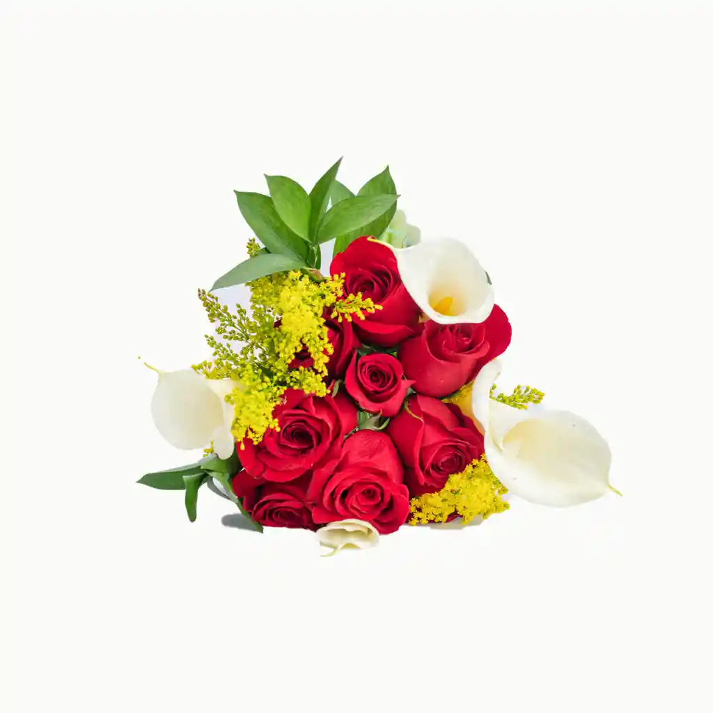 9 Rosas rojas tipo exportación y 4 cartuchos, 30 cm de largo, incluye decoración y tarjeta (indicar en el chat que mensaje desea)